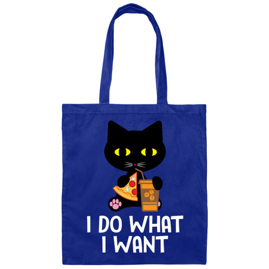 "I Do What I Want" Black Cat Pizza & Coffee Tote Bag – Stylish & Practical for Cat Lovers, Cat Owners & Cat Ladies!