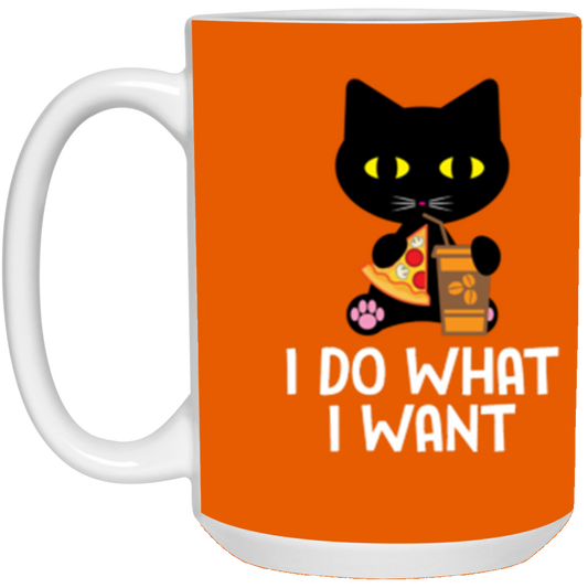 "I Do What I Want" Black Cat Pizza & Coffee Mug – Perfect for Cat Lovers, Cat Owners & Cat Ladies!