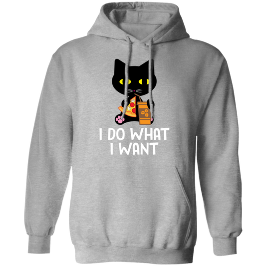 "I Do What I Want" Black Cat Pizza & Coffee Hoodie – Cozy Comfort for Cat Lovers, Cat Owners & Cat Ladies!