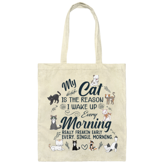 "Every Morning Cat Alarm" - Cute & Cuddly Cat Lover's Tote Bag