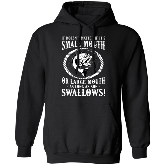 Funny Fishing Hoodie: "Small Mouth or Large Mouth, As Long As She Swallows!" – Cozy & Fun for Anglers!