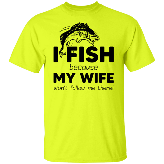 “I Fish Because My Wife Won't Follow Me There!” Fishing T-Shirt – Perfect Gift for Anglers!