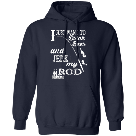 “I Just Want To Drink Beer And Jerk My Rod” Fishing Hoodie – Cozy & Fun Gift for Anglers!