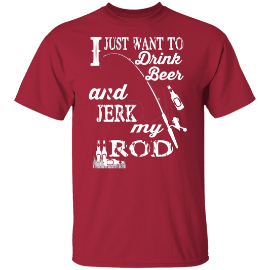“I Just Want To Drink Beer And Jerk My Rod” Fishing T-Shirt – Perfect Gift for Anglers & Beer Lovers!