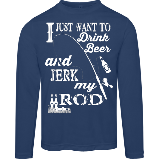 “I Just Want To Drink Beer And Jerk My Rod” Long Sleeved Fishing Tee – Moisture-Wicking & UV 40+ Protection!