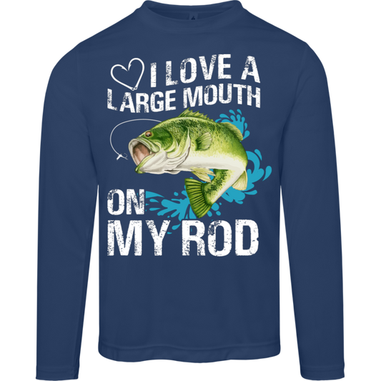 “I Love A Large Mouth On My Rod” Performance Long Sleeve Tee – Moisture-Wicking & UV 40+ Protection for Anglers and Fishing Enthusiasts!