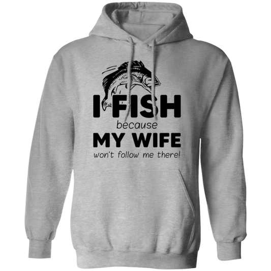“I Fish Because My Wife Won't Follow Me There!” Fishing Hoodie – Cozy and Fun Gift for Anglers!