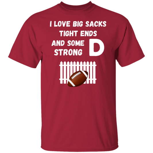 "I Love Big Sacks, Tight Ends, and Strong D-Fence" Football T-Shirt