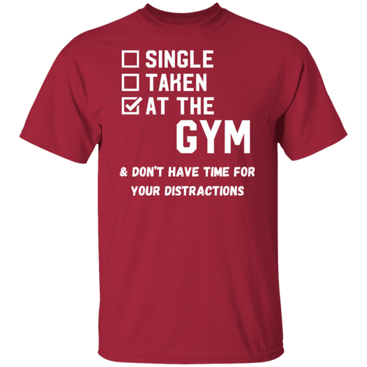 "Single. Taken. At The Gym & Don’t Have Time For Your Distractions" – Gym Lover’s Statement T-Shirt