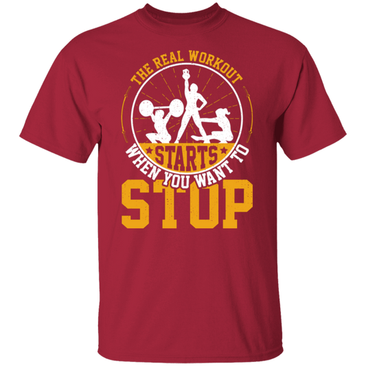 "The Real Workout Starts When You Want To Stop" T-Shirt – Perfect for Gym Lovers & Fitness Enthusiasts!