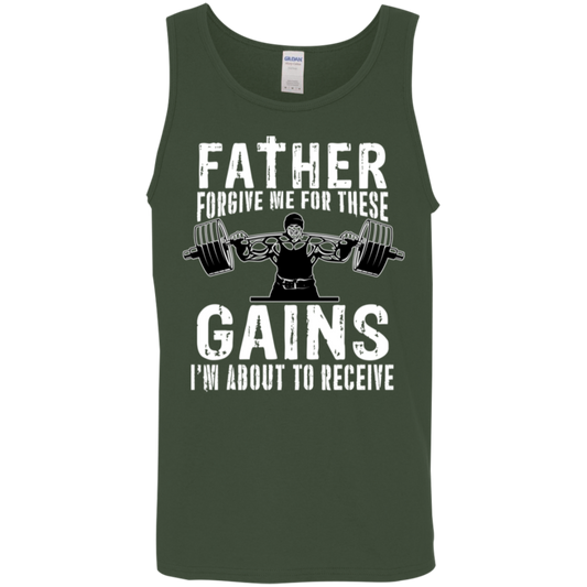 "Father Forgive Me For These Gains I'm About To Receive" Tank Top | Workout Humor Gym Wear