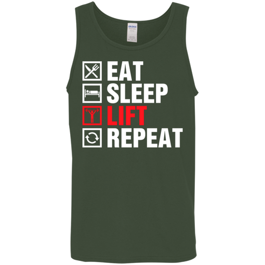 "Eat, Sleep, Lift, Repeat" Tank Top – Essential Workout Gear for Fitness Buffs and Weight Lifters!