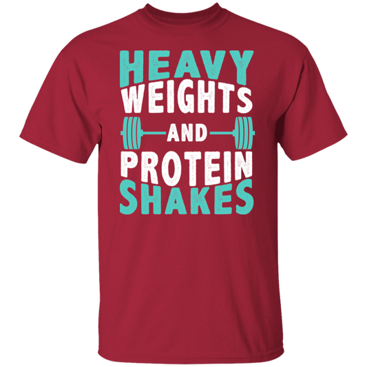 "Heavy Weights and Protein Shakes" Gym T-Shirt – Perfect for Fitness Enthusiasts & Weight Lifters!