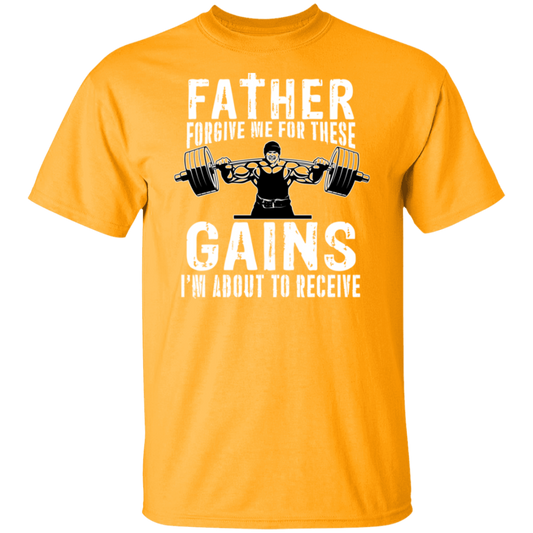 "Father Forgive Me For These Gains I'm About To Receive" Weightlifting T-Shirt | Gym Enthusiast Humor Tee
