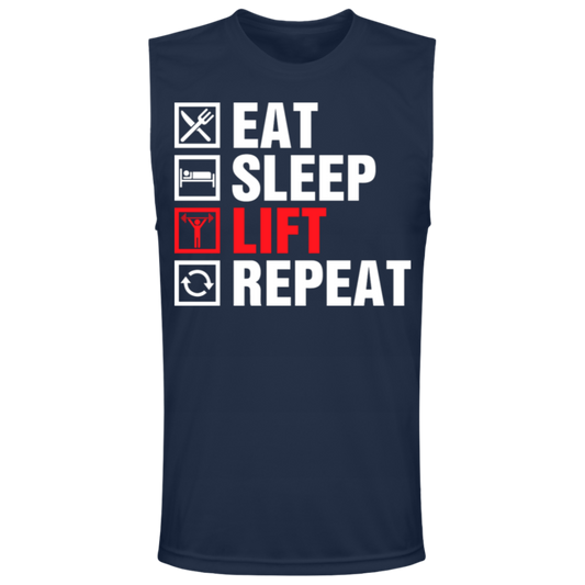 "Eat, Sleep, Lift, Repeat" Muscle Tee – Essential Gym Wear for Weight Lifters and Fitness Enthusiasts!