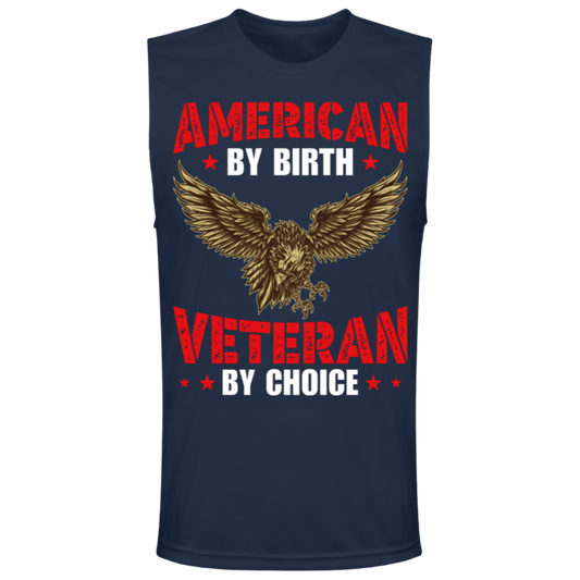 "American By Birth, Veteran By Choice" Patriotic Muscle Tee with Flying Eagle