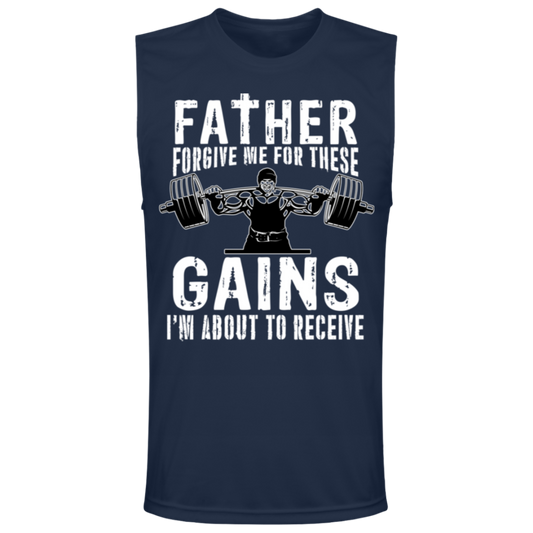 "Father Forgive Me For These Gains I'm About To Receive" Muscle Tee | Fitness Humor Gym Shirt