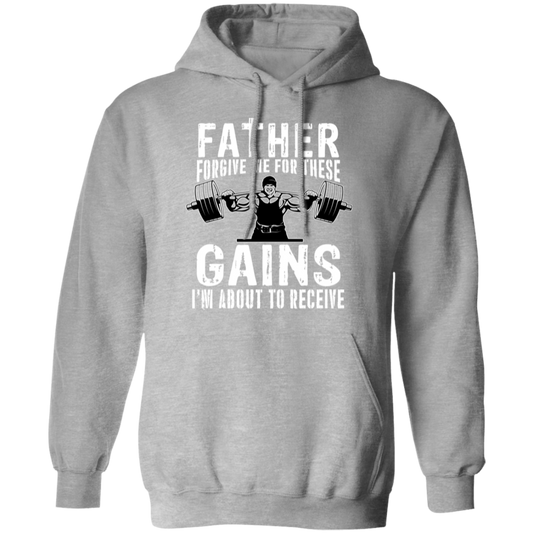 "Father Forgive Me For These Gains I'm About To Receive" Hoodie | Fitness Humor Gym Sweatshirt